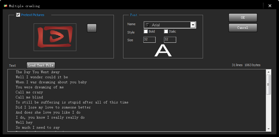 , drag the mouse in the editing area,then select a text file include lyrics.