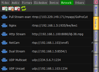 Each network source supports two addresses, which are automatically switched to address 2 when the connection of address 1 is interrupted. If there is only one address, leave address 2 blank.