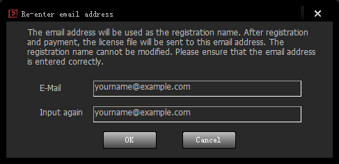 - Repeat your email address twice to ensure consistency. Clicking on the "OK" button will download the trial license file from the official server and restart the software.
