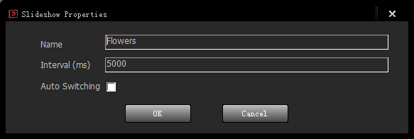 You can modify the name of the slide, the switching duration, and whether to switch automatically.